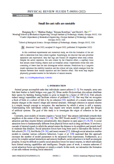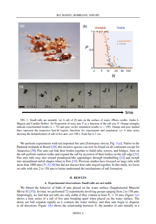 Ko, H., Hadgu, M., Komilian, K. and Hu, D.L., 2022. Small fire ant rafts are unstable. Physical Review Fluids, 7(9), p.090501.